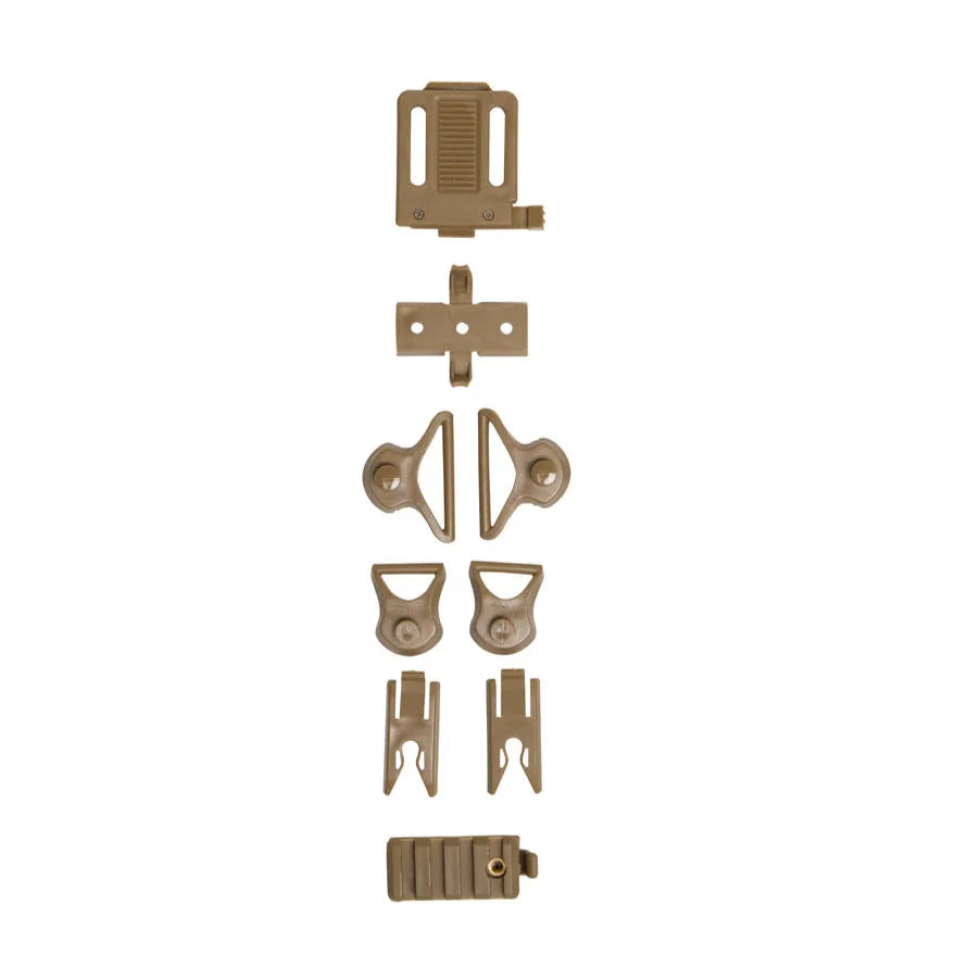 Lisävarusteiden kiinnittämiseen kypärään on useita vaihtoehtoja. Molemmilla puolilla olevien kiskojen avulla voit asentaa tähän lyhdyn, laserin, kameran tai lasit. Sen mukana tulee erilaisia kiinnikkeitä erilaisten laitteiden kiinnittämiseen. Kypärän etuosassa on myös kiinnitys NVG-pimeänäkölaseille. Tämä on stabiloitu kahdella kuminauhalla, mikä tekee siitä mukavampaa kävellä.