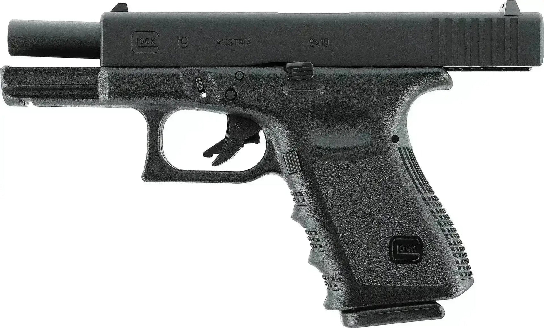 Glock 19 -malli, joka sinulla on täällä, on hieman kompaktimpi versio tunnetusta G17-mallista, ja siinä on vakiona 15-pyörinen lipas verrattuna G17-malliin 17-kerrokseen. Toinen ja suurempi lipas sopii myös G19-malliin, mutta silloin lipas työntyy hieman pidemmälle. G19-mallia käytetään Ruotsissa muun muassa Ruotsin puolustusvoimissa, mutta silloin se kulkee nimellä Pistol 88B.