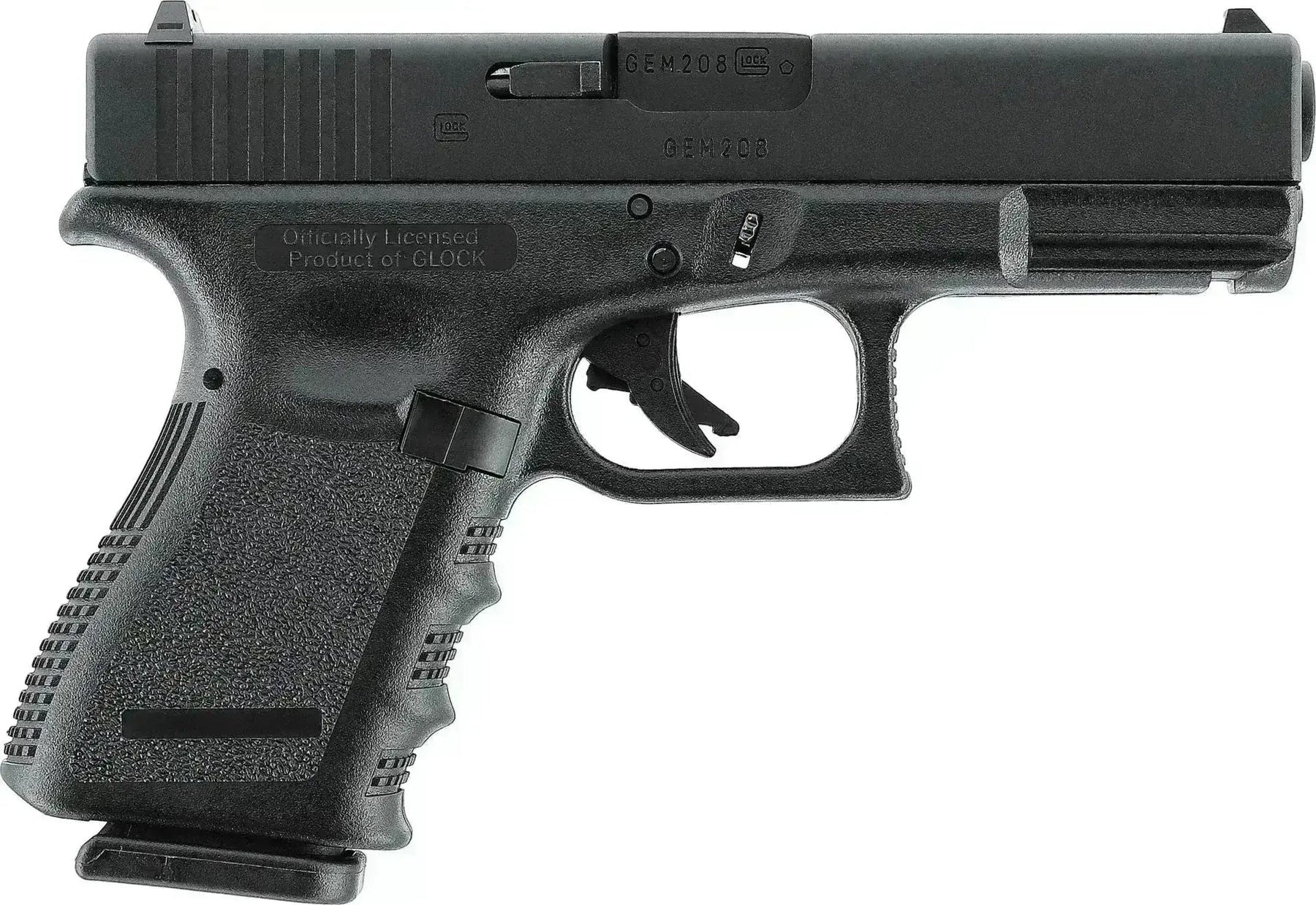 Kompakti Glock-ohjelmistoase, joka on täysin identtinen alkuperäisen version kanssa. Aseessa on alkuperäisen tapaan täysmetallinen liukumäki polymeerirungolla.
