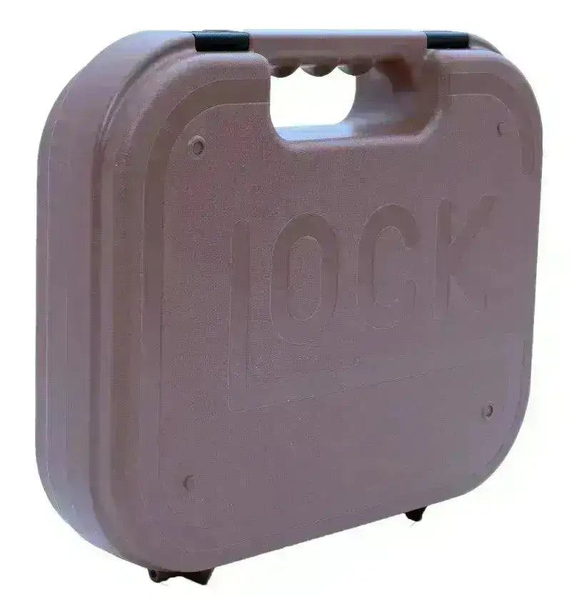 Tämä tyylikäs kotelo on suunniteltu Glock-jäljitelmäaseille ja muille pistooleille. Täydellinen kooltaan yhdelle replikalle ja kahdelle ylimääräiselle lippaalle. Kotelo on valmistettu kovasta, ruskeanvärisestä muovista, ja sen etupuolella on Glock-logo. Täydellinen Glock 19X