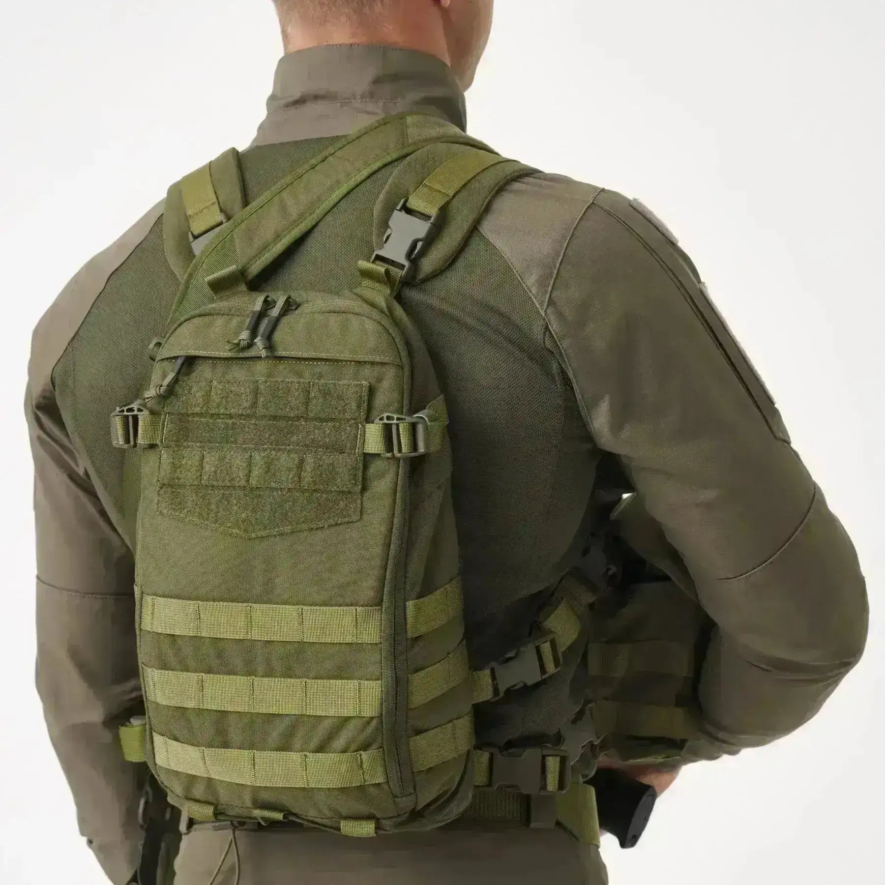 Olkaimet ovat säädettäviä ja ne voidaan helposti irrottaa kokonaan. Laukku voidaan kiinnittää suoraan taisteluliiviin MOLLE/PALSilla.
