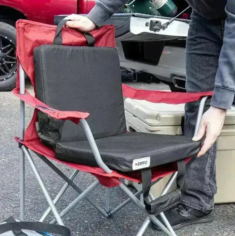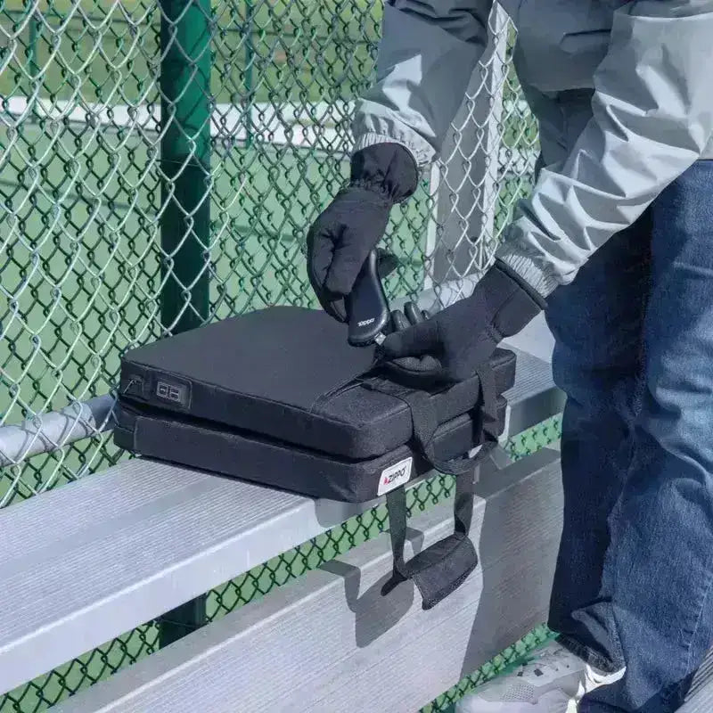 Tee kylmästä stadionin istuimesta tai viileistä metsästysmaista lämpimiä ja mukavia Zippo Double Heating Seat -istuimella. Tämä pehmeä ja pehmustettu istuin liitetään USB-yhteensopivaan virtalähteeseen, kuten Zippo HeatBank® -yksiköihin, säädettävän lämmön saamiseksi. Vettä hylkivä nailonrakenne, useat lämpötasot ja kompakti kokoontaittuva muotoilu tekevät siitä täydellisen kaikenlaiseen ulkoiluun.