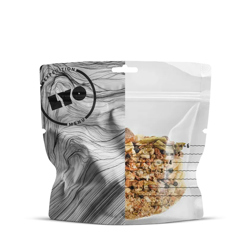 LYOFOOD Svinegryte med potet kombinerer møre biter av svinekjøtt med kokte poteter og en smaksrik saus laget av grønnsaker og krydder. Retten er laget med 100 % naturlige ingredienser, uten konserveringsmidler, og er frysetørket for å gi lav vekt og lang holdbarhet. Perfekt for deg som ønsker ekte, kraftig turmat etter en lang dag ute.