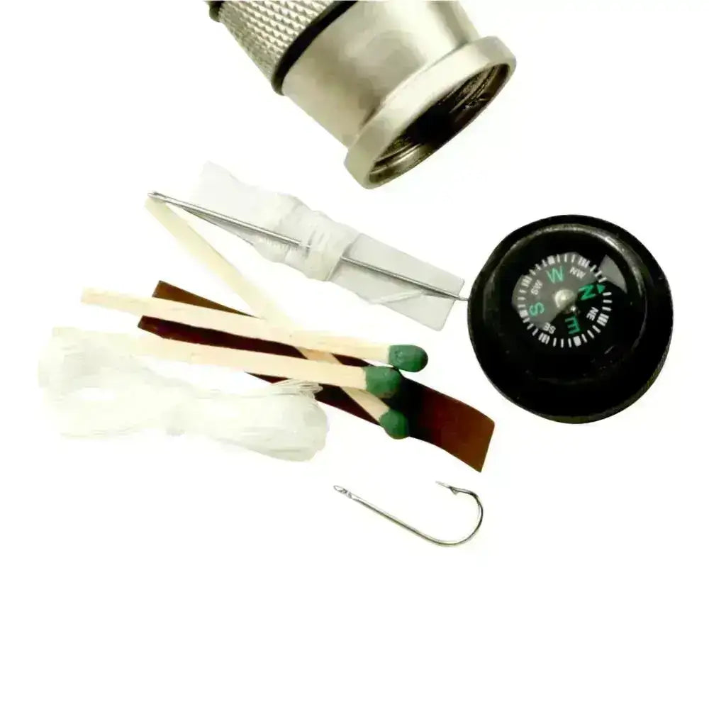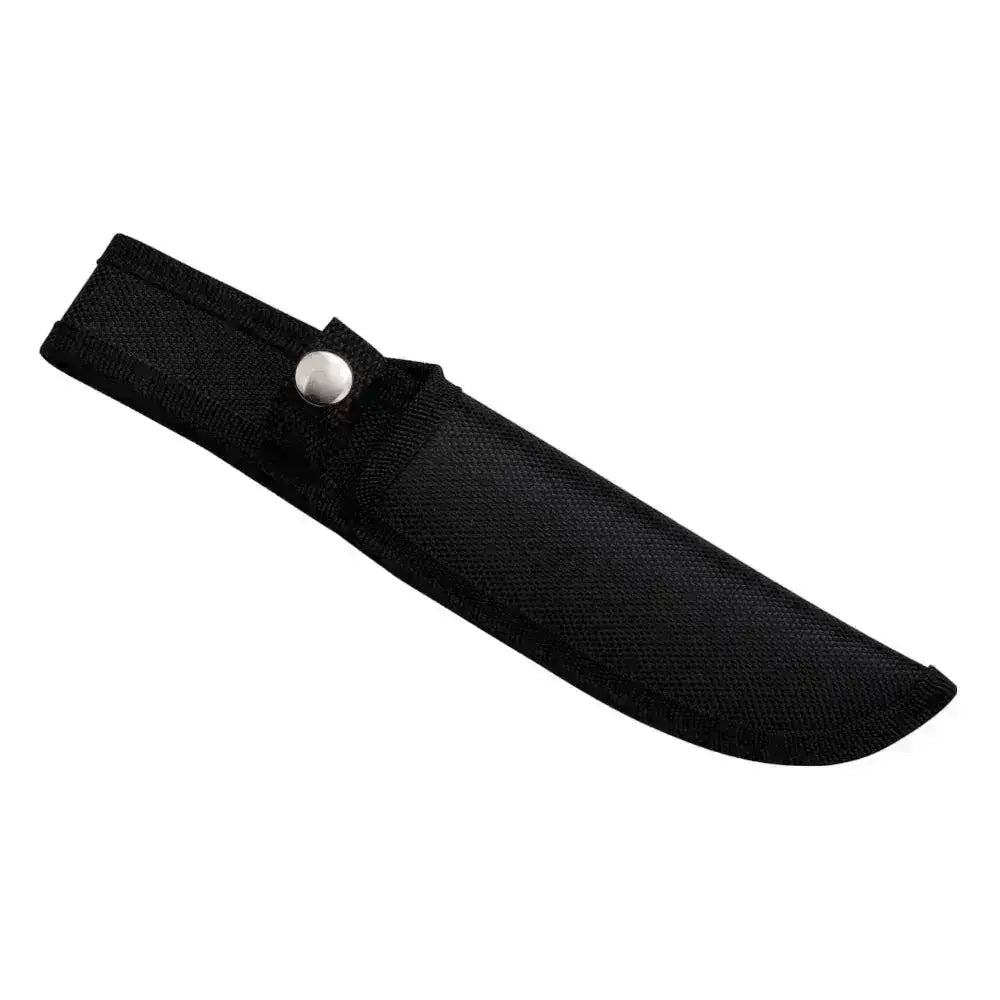 Mukana oleva selviytymispakkaus tarjoaa lisäturvaa luonnossa. Veitsi on säilytetty turvallisesti mustassa nylonsuojassa, joka tarjoaa helpon pääsyn ja suojaa sekä käyttäjää että terää.