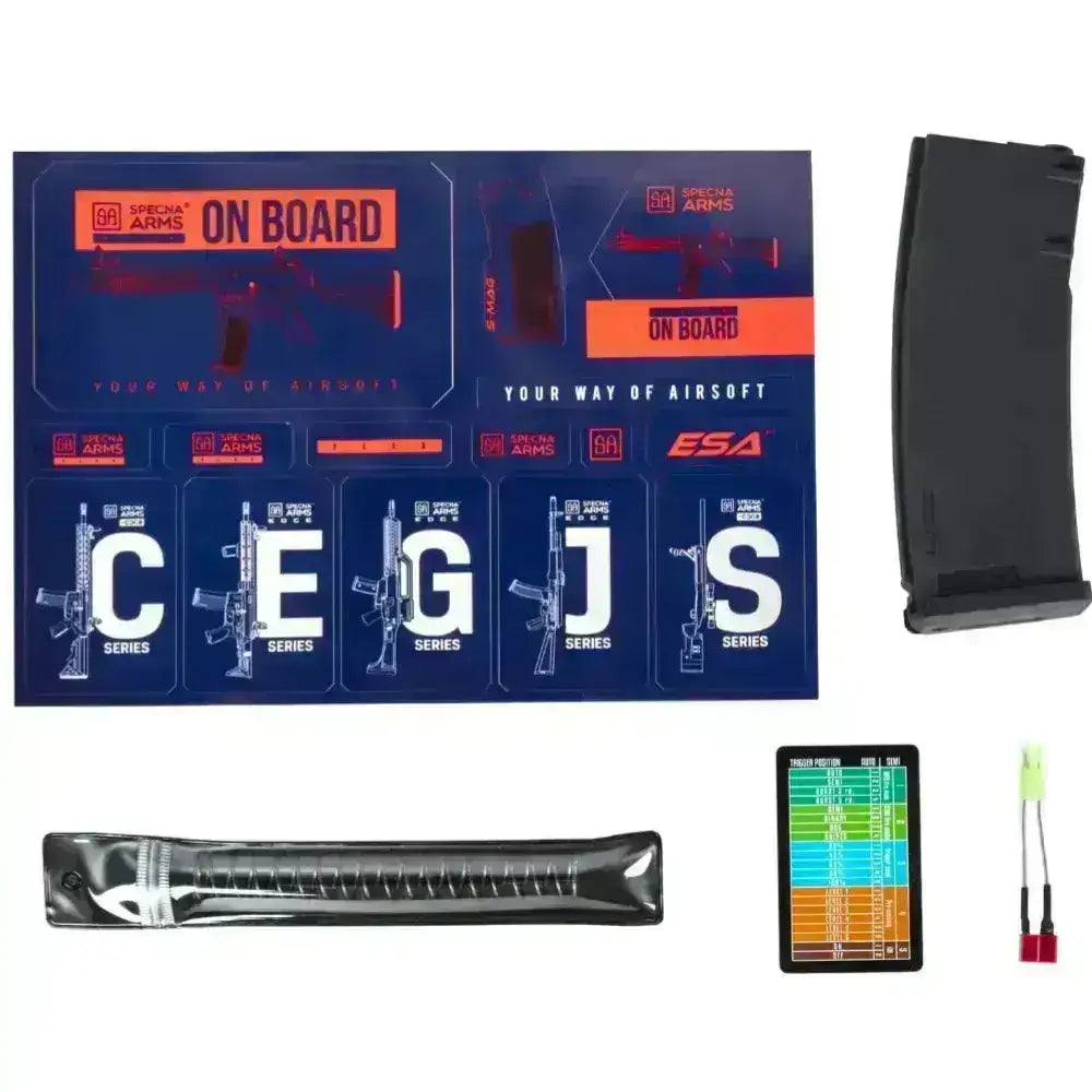 Specna Arms SA-F08 FLEX™ HAL ETU™ on luotettava ja monipuolinen FLEX™-sarjan airsoft-karbiini, jossa on HAL™-siru ja edistynyt elektroniikka. HAL™-järjestelmä tarjoaa käyttäjän ohjelmoitavia ominaisuuksia, kuten aktiivisen jarrun, binääriliipaisimen, säädettävän herkkyyden ja useita laukaisutiloja (täysautomaattinen, puoli-, 3- ja 5-laukauksen sarja). Tämä tekee siitä ihanteellisen erilaisiin peliskenaarioihin.