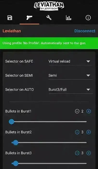 - Virtuaalisen "low cap" -asetuksen avulla voit valita laukausten määrän ja pakottaa aseen lopettamaan ampumisen, kun saavutat 0