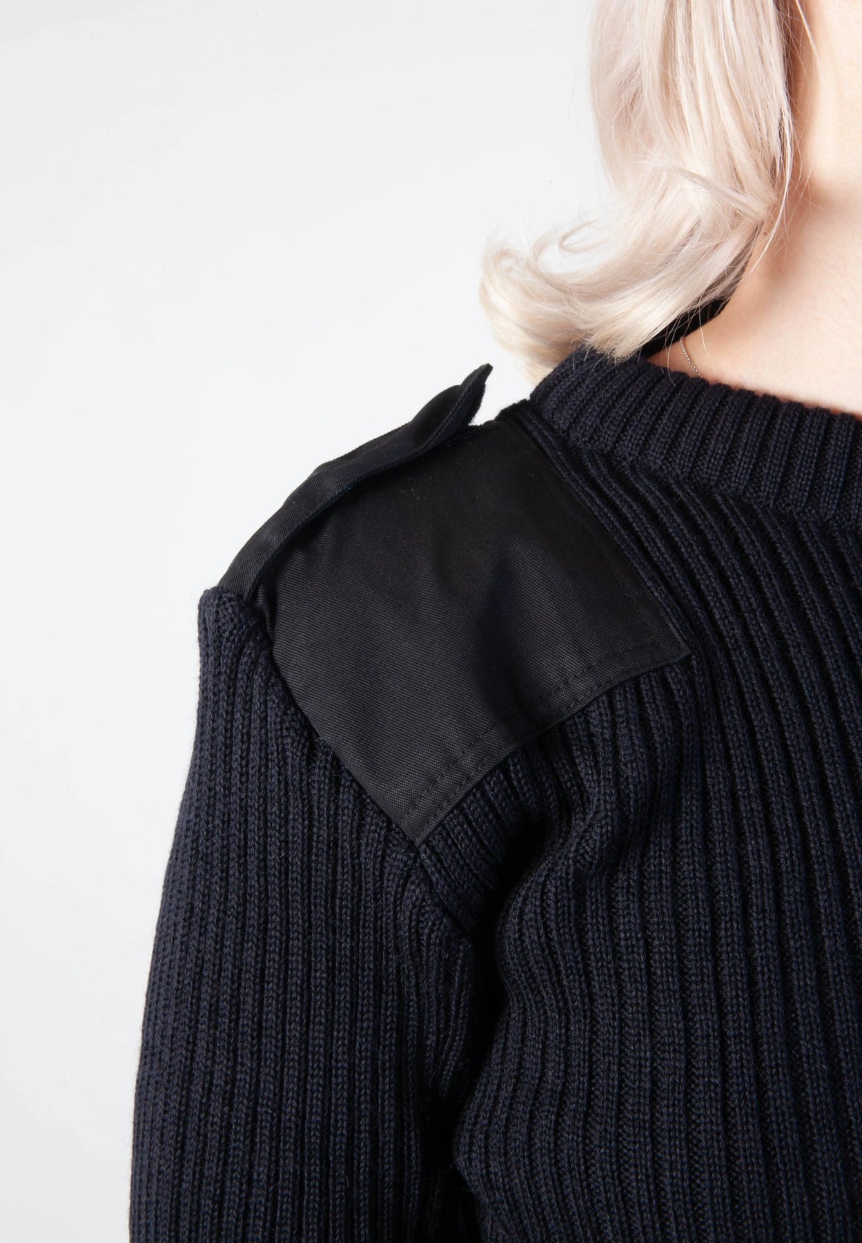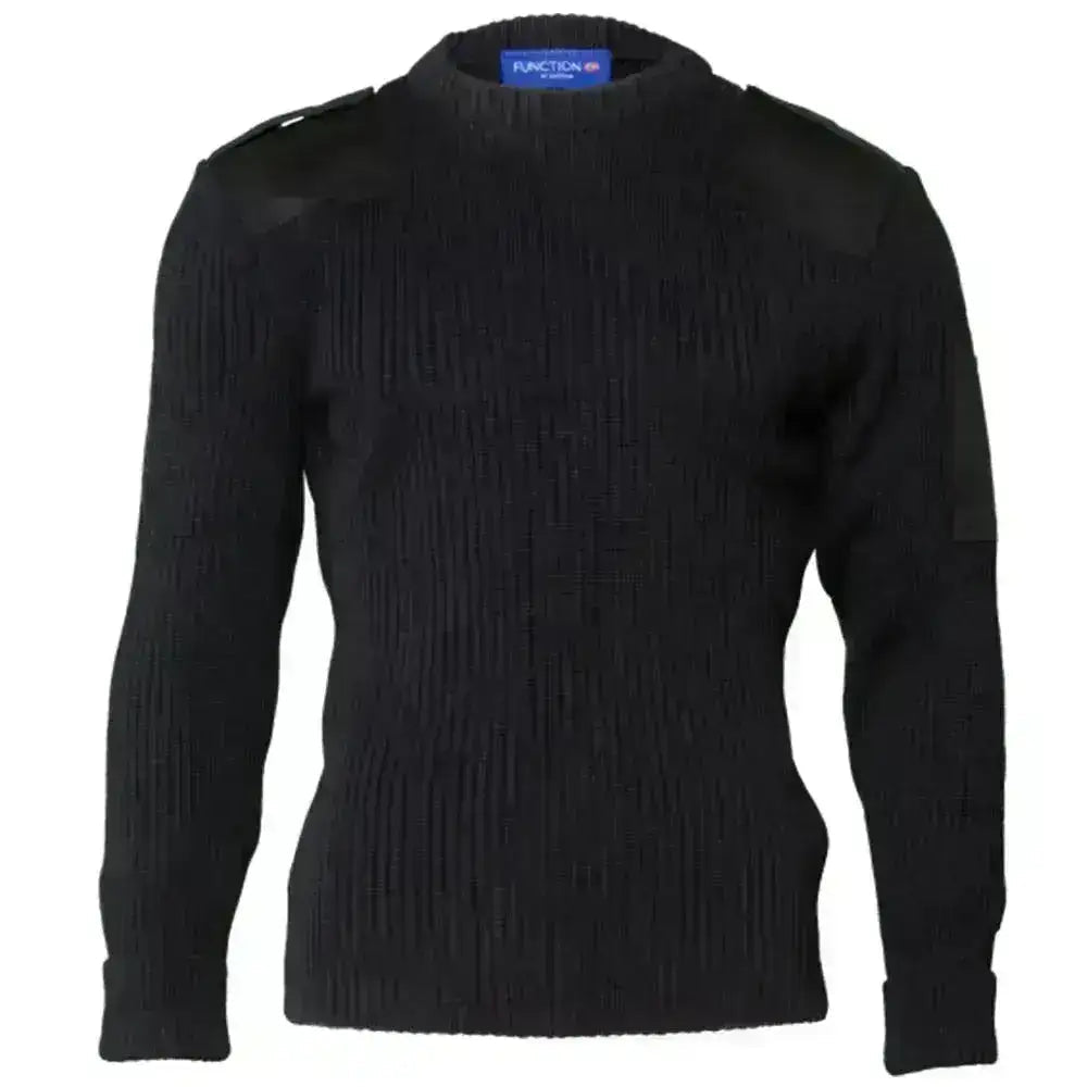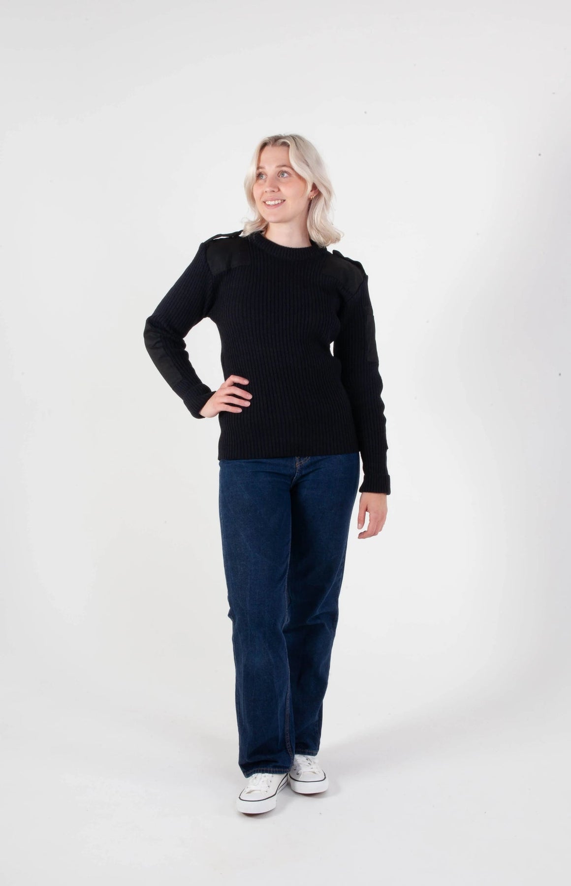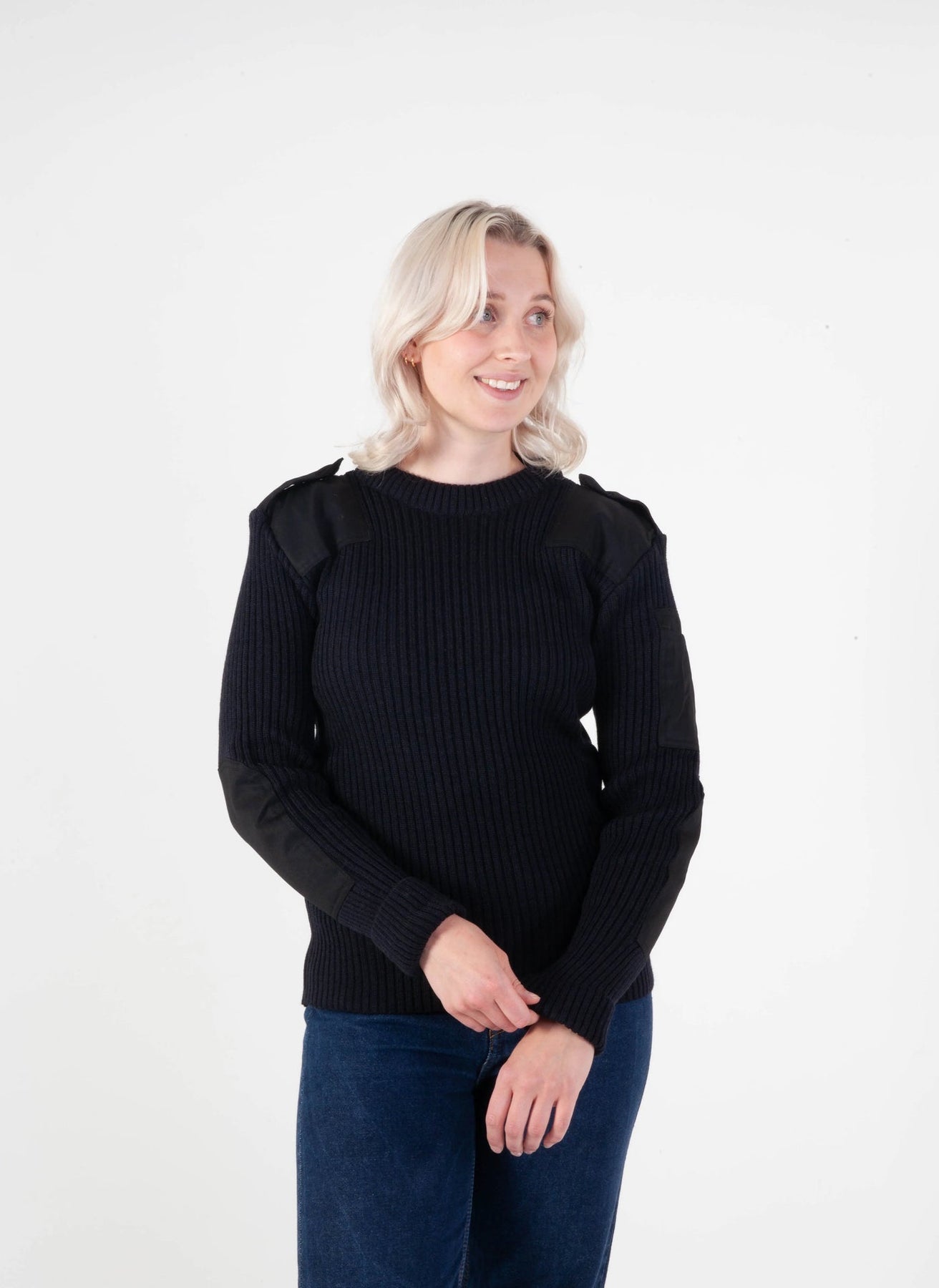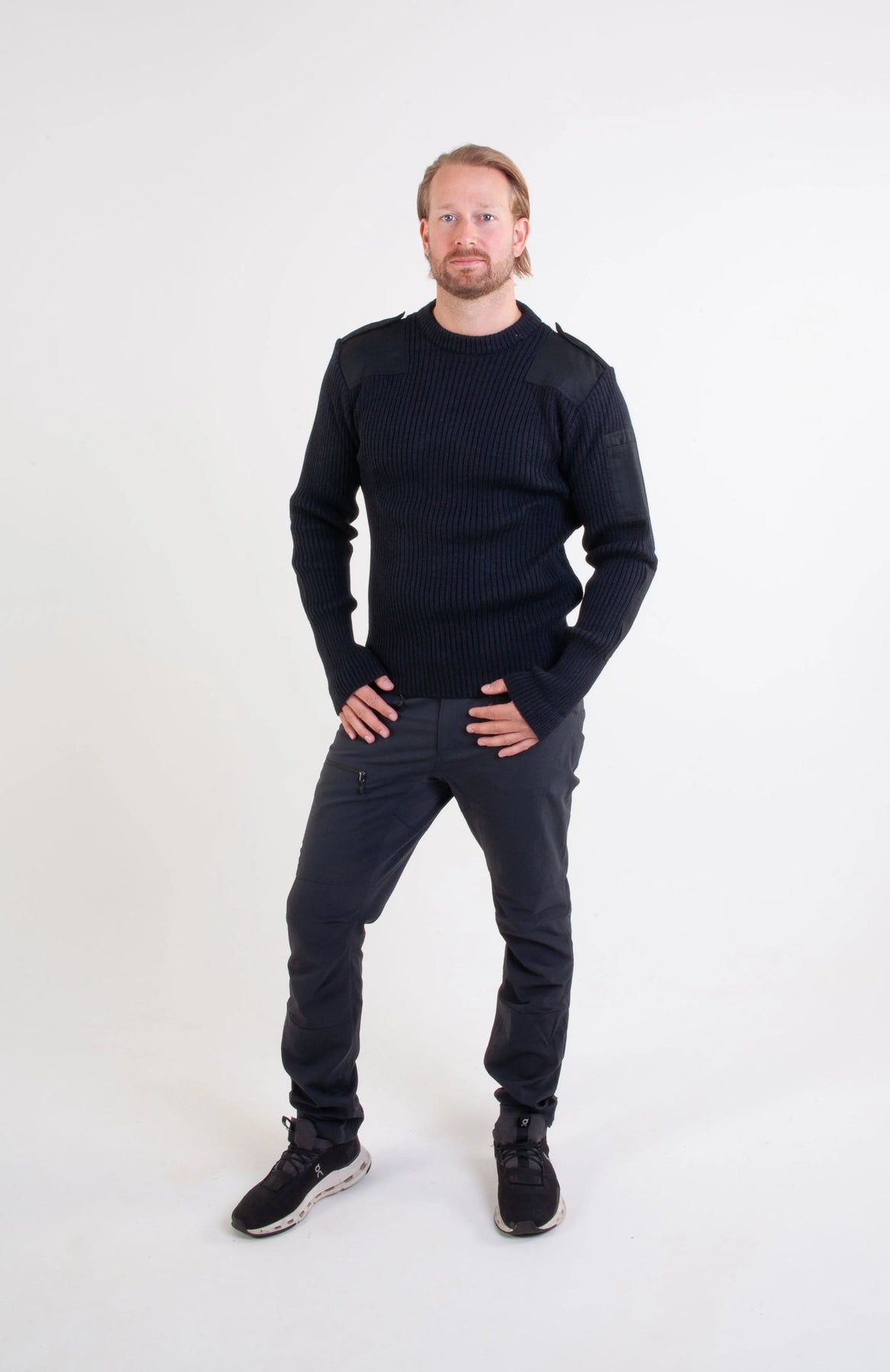 Norjalainen NATO-neulepusero musta – unisex-villaneule vahvikkeilla