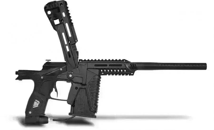 Tällä sarjalla voit mukauttaa tussi mihin tahansa ympäristöön, se sopii sekä Eclipsen LV1- että ETEK5-merkkiin. Saatavilla on runsaasti 21 mm:n kiskotelineitä, joihin voit kiinnittää valot, laserit, tähtäimet ja muut 21 mm:n kiskotarvikkeet, joita mielikuvituksesi voi keksiä. Takaosa kääntyy helposti ylös, jotta pääset nopeasti käsiksi merkin osiin ilman työkaluja, joten pääset nopeasti käsiksi pulttiin, kun olet kentällä. Takana on liitäntä, jota voidaan käyttää tavallisten Tippmann 98 -tyyppisten pullojen kanssa, nostokiinnityksen lisäksi.
