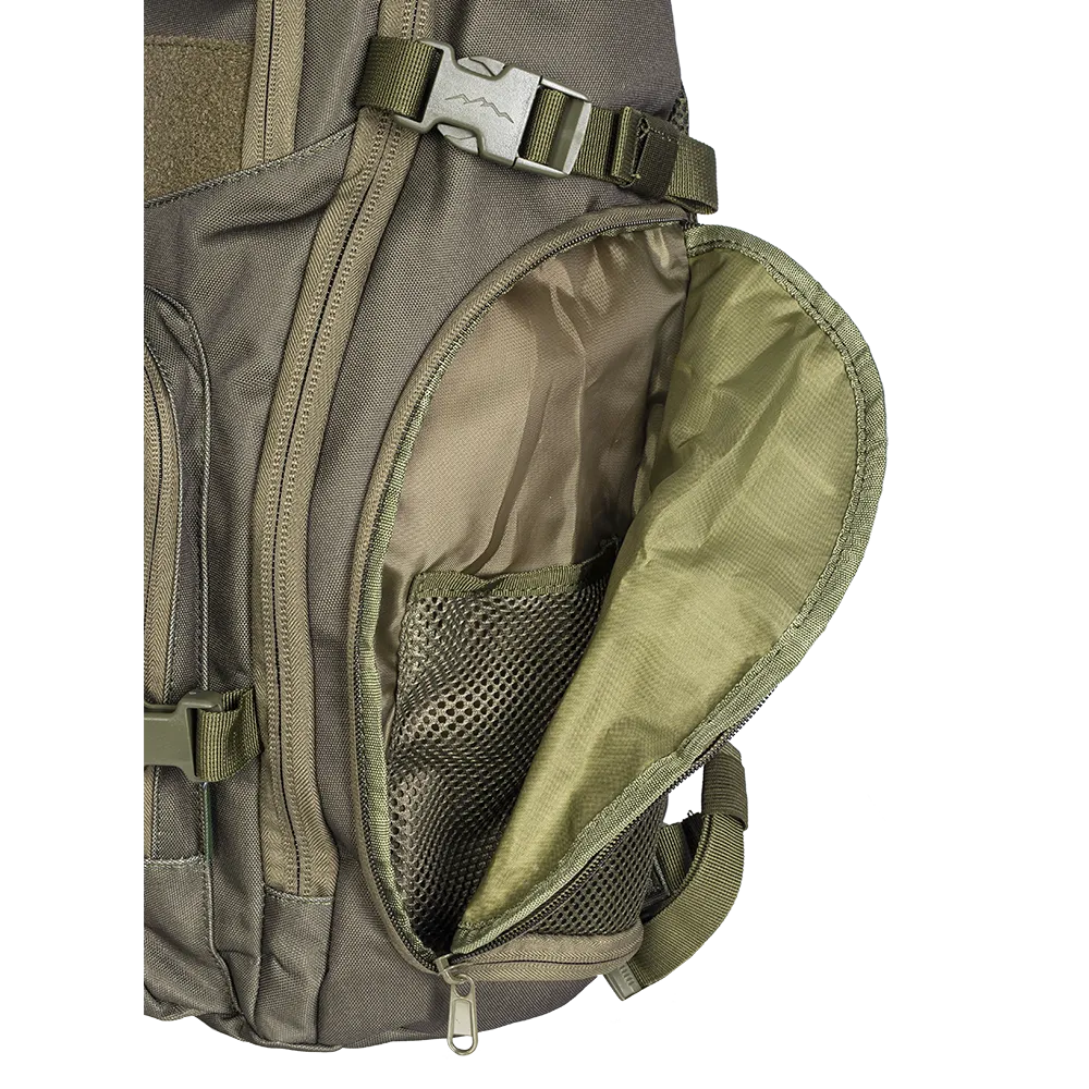 Remington Large Hunting Backpack er en allsidig og slitesterk sekk designet for deg som trenger pålitelig oppbevaring under jakt, fiske eller fotturer. Med et volum på 45 liter og flere smarte løsninger, gir denne sekken deg både kapasitet og komfort i felt.