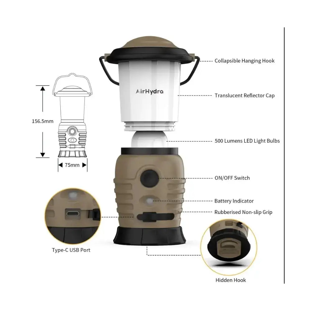 Skywoods 500 Lumens Camping Lantern gir høy lysstyrke, praktisk oppheng og hurtiglading i et robust og kompakt design. En pålitelig løsning for camping, nødsituasjoner og arbeidslys der du trenger solid og fleksibel belysning.