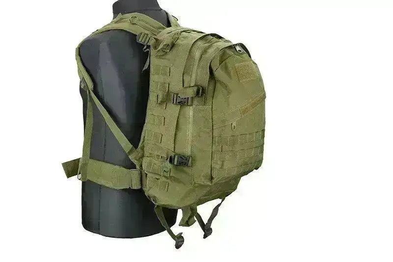 Upea reppu, jossa on runsaasti tilaa ja säätömahdollisuuksia, joka sopii yhtä hyvin matkoille, kouluun, jokapäiväiseen käyttöön kuin airsoftiin ja paintballiin. Repussa on runsaasti tilaa ja säädettävät olkaimet ja vatsahihna sekä MOLLE-kiinnitys, jotta voit kiinnittää ylimääräisiä moduulit tai lehtitaskut haluttaessa.