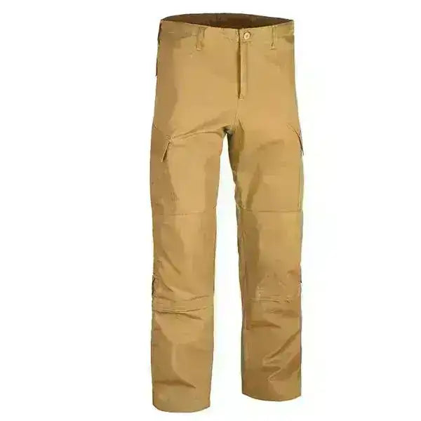 Kestävät ja hengittävät taktiset housut, joissa on runsaasti tilaa taskuissa. Housuissa on rip-stop, mikä tekee niistä erityisen kestäviä. Housuissa on runsaasti taskuja, joista 4 edessä, 2 nilkassa ja 2 takana. Kojootinruskea naamiointi.