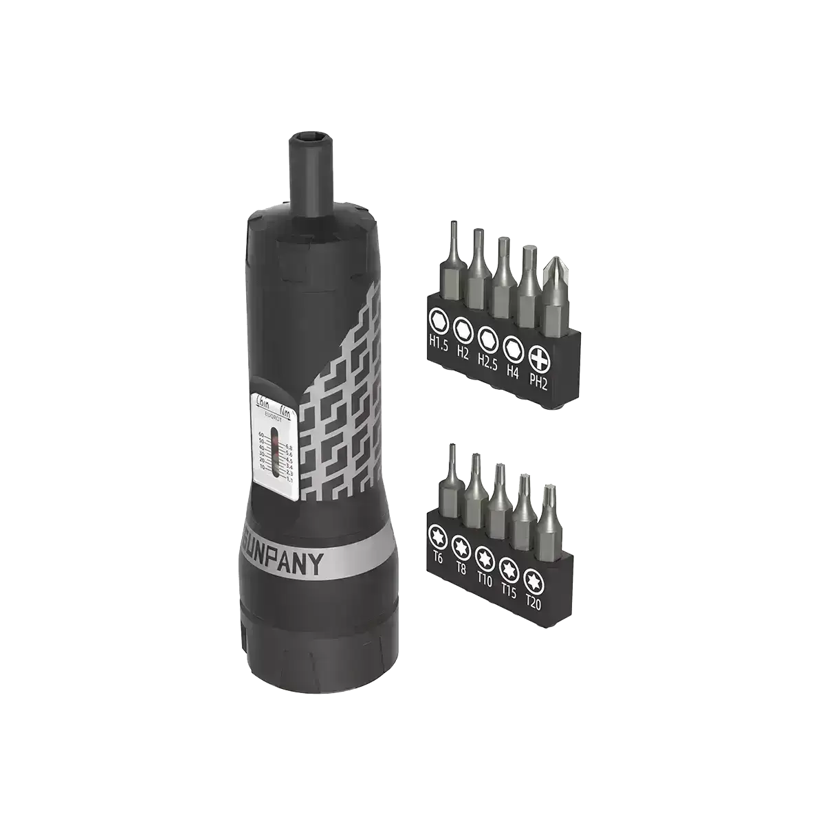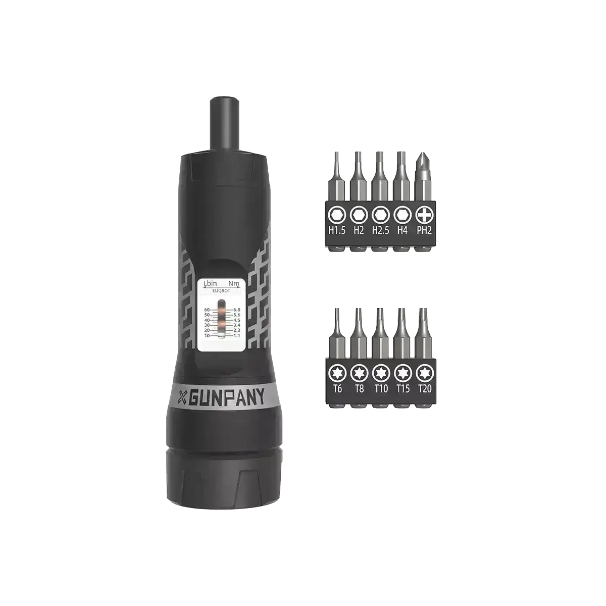 Gunpanyn momenttiavainruuvimeisseli säädettävillä asetuksilla (10-60 in/lbs