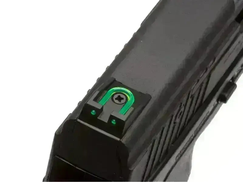 Rautatähtäimet ovat vihreää valokuitua, mikä tekee tähtäyksestä helppoa. Piipun alapuolella on 21 mm:n kiinnike taskulampun tai laserin kiinnittämiseen haluttaessa.