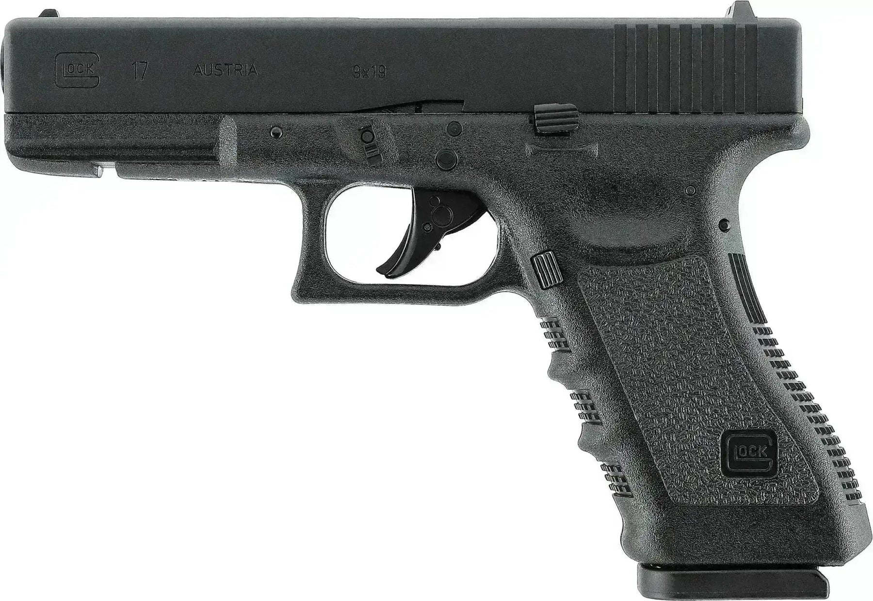 Glock 17 CO2 er en fullt lisensiert 6mm GBB-replika fra Umarex med metallslide, 21mm rail og kraftig blowback. Modellen leveres med double og single action og har autentiske logoer og merkinger.