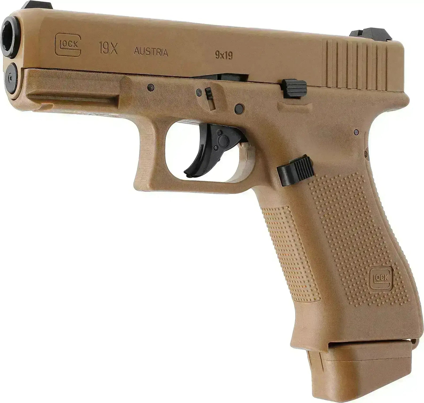 Glock kuvailee G19X-mallia ensimmäiseksi "crossover-pistoolikseen". Mallissa yhdistyvät Glock 17:n täysikokoinen runko ja Glock 19:n kompakti liukumäki. Coyote Tan -viimeistely erottaa pistoolin muista Glockeista.