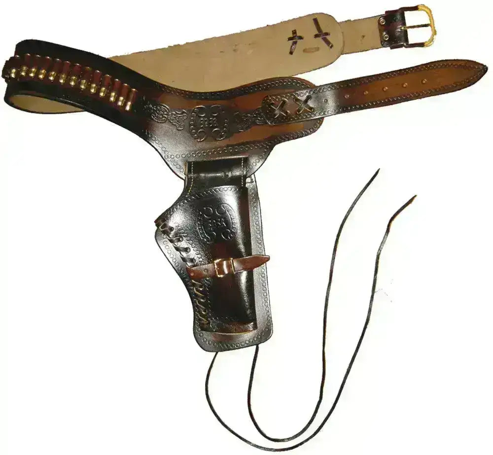 HUOMAA: Tämä on nahkaa, jokaisella vyöllä on oma ainutlaatuinen persoonallinen ilmeensä ja kuvat voivat vaihdella hieman. Revolverit ja patruunat eivät sisälly!