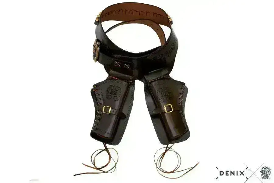 Denix Western vyö kotelolla sekä vasemmalle että oikealle. Valmistettu nahasta - laadukas cowboy-vyö!