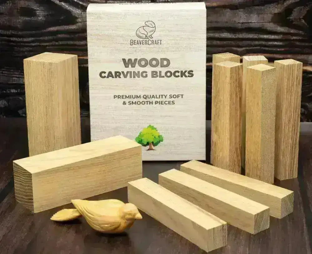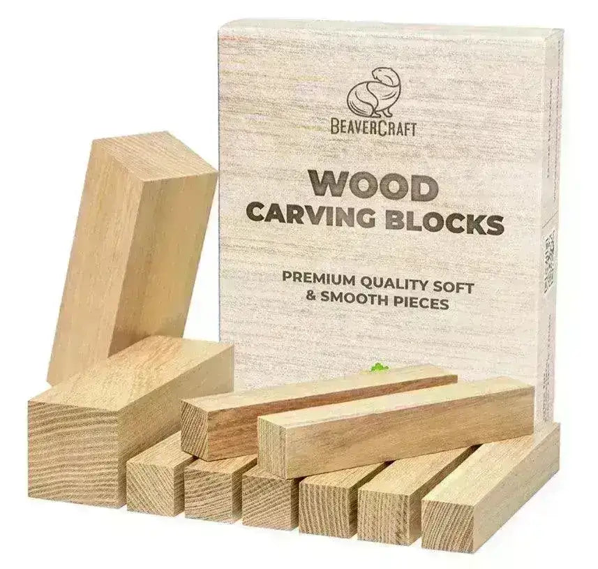 10stk treklosser fra Beaver Craft til treskjæring, klossene er av tresorten Akasie.