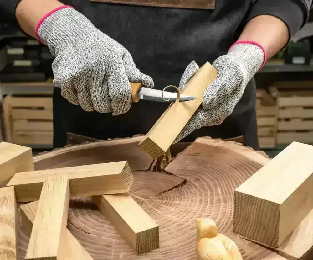 Du får totalt 10stk tre-emner til treskjæring og spikking i dette settet.