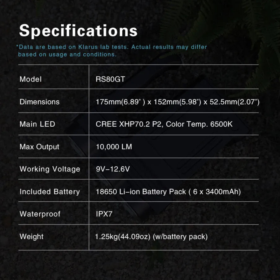 RS80GT er utstyrt med ITS (Intelligent Thermal Protection System), som automatisk justerer lysstyrken basert på temperatur for å forhindre overoppheting.