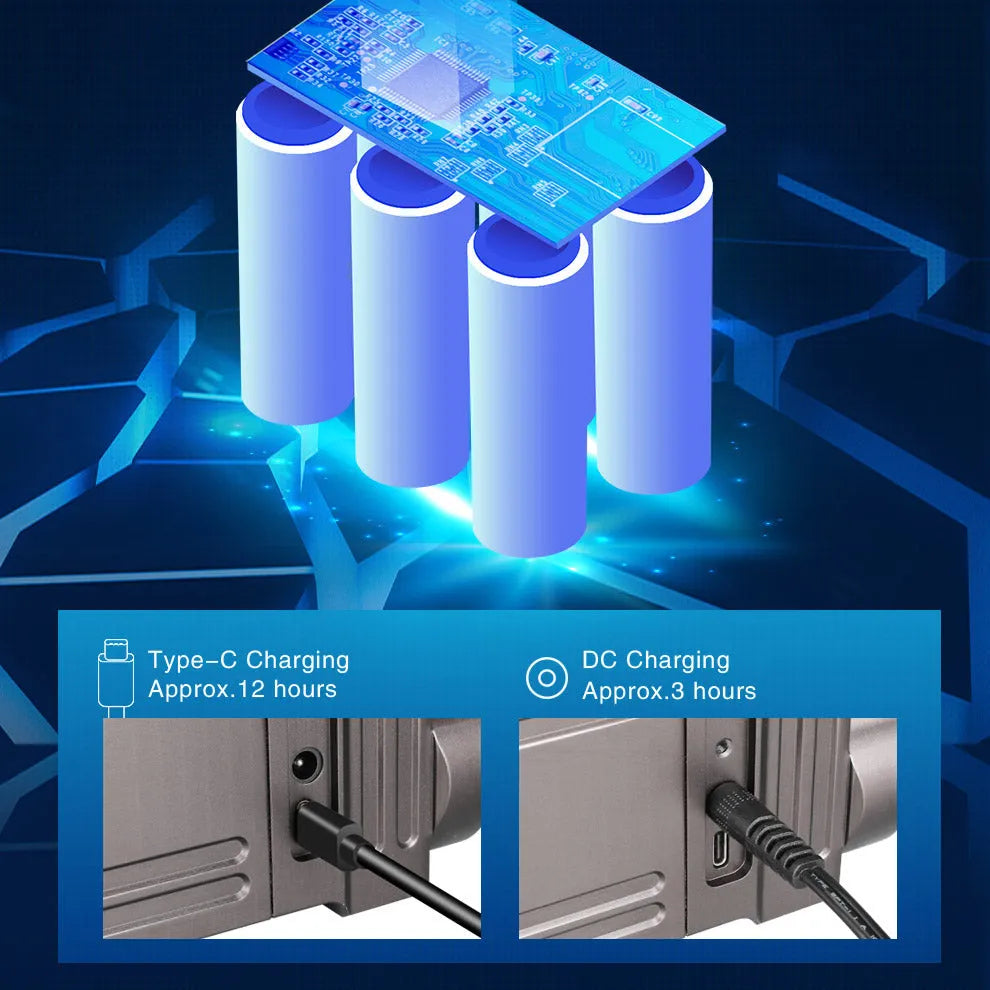 RS80GT drives av en oppladbar batteripakke med seks 18650 Li-ion-batterier (3400 mAh hver), som gir en maksimal driftstid på opptil 135 timer. Lading gjøres via USB-C (12 timer) eller DC (3 timer)(medfølger). I tillegg har lykten en USB-utgang som kan brukes som powerbank for andre enheter.