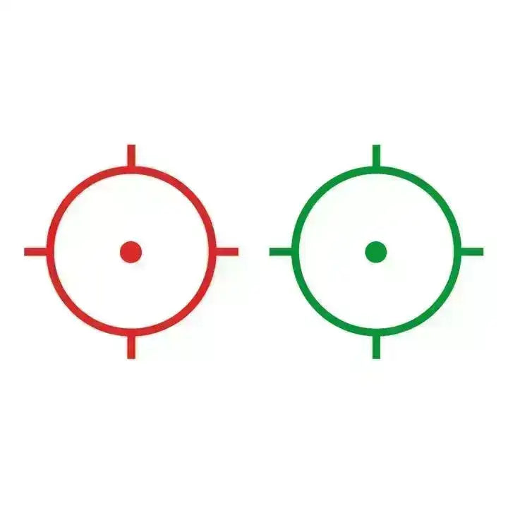 Tähtäin on kevyt ja sen akun kesto on 15-120 tuntia. Voit valita punaisen tai vihreän valaistun ristikon välillä. Hiusristikko on ympyrä, jonka keskellä on piste (katso kuva).