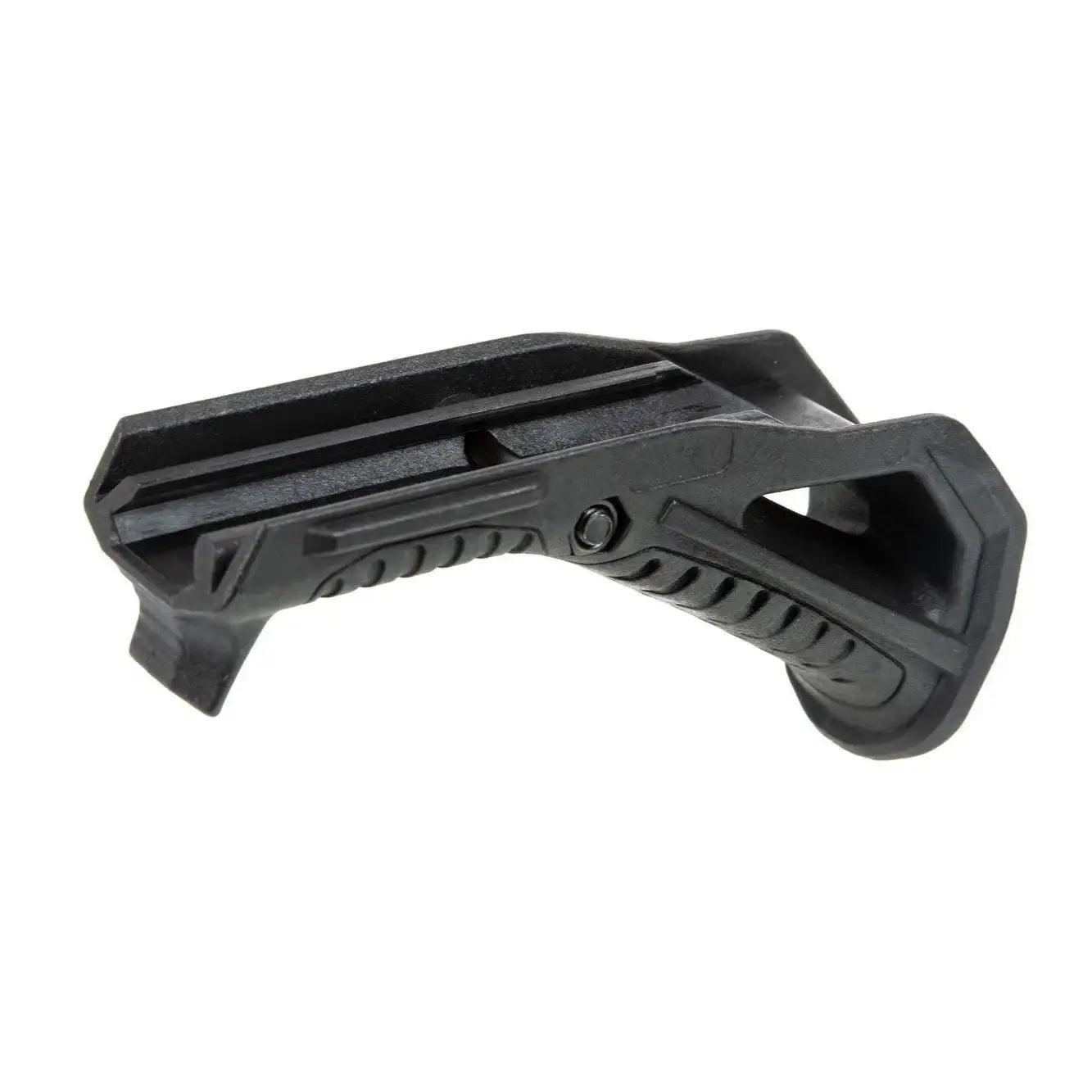 Tämä etukahva on valmistettu erittäin kulutusta kestävästä polymeeristä metalliruuveilla. Asennat kädensijan helposti kaikkiin 21 mm:n kiskoihin, ja se korvaa erinomaisesti normaalit pystysuuntaiset etukahvat. Kädensijan suunnittelun ansiosta käsi saa optimaalisen otteen kiväärin ympäriltä ja peukalo lepää automaattisesti kahvan sivulla. Tämä puolestaan tarkoittaa, että saat erittäin vakaan aseen ampumiseen riippumatta siitä, tähtäätkö pitkään vai tarvitsetko ampua nopeasti maaliin.