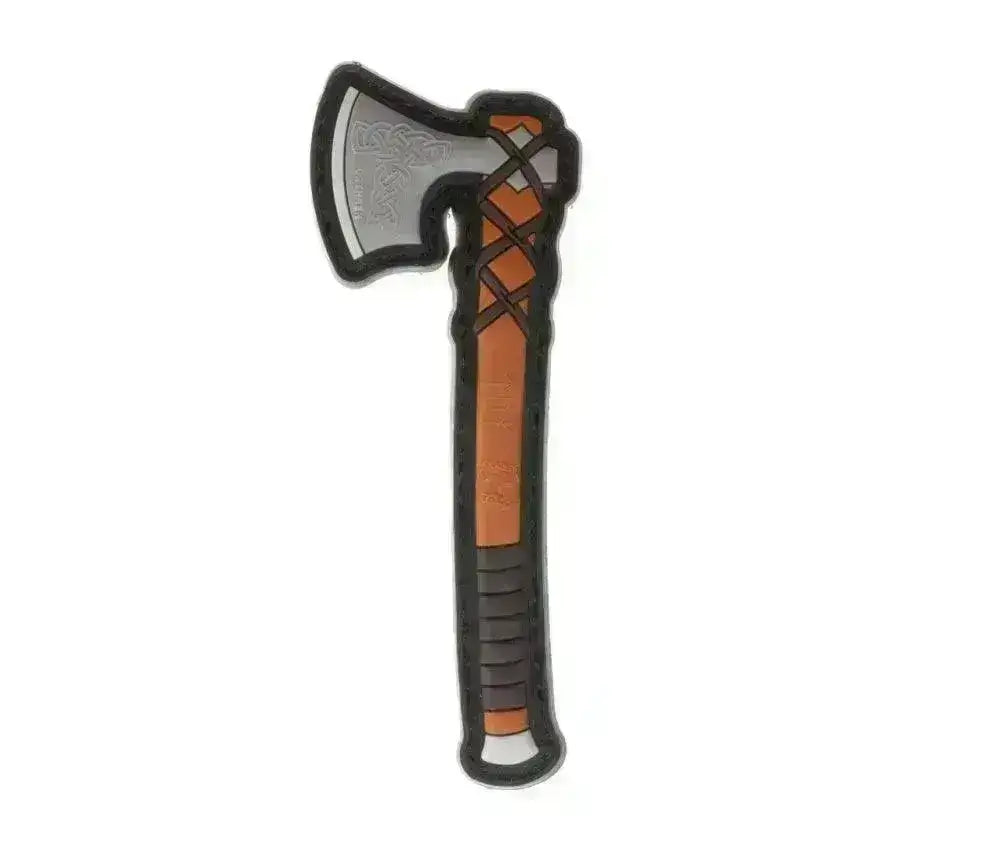 Suuri ja aito pohjoismainen kangasmerkki, jossa on yksityiskohtainen viikinkikirveen 3D-aihe! Kirveen päässä on Thorin vasara-aihe.