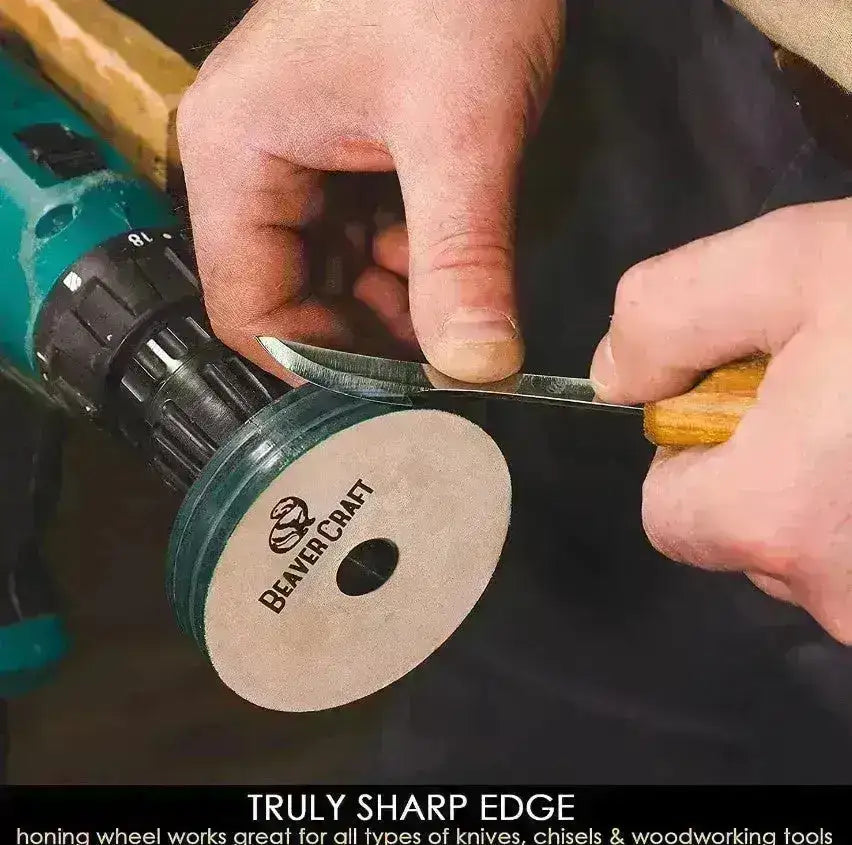 Anna porakoneen pyörittää nahkapyörää ja käyttää kiillotuspasta, aloita sitten veitsien teroitus nopeasti ja helposti! Asianmukaisella huollolla veitset kestävät eliniän.
