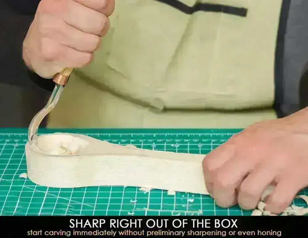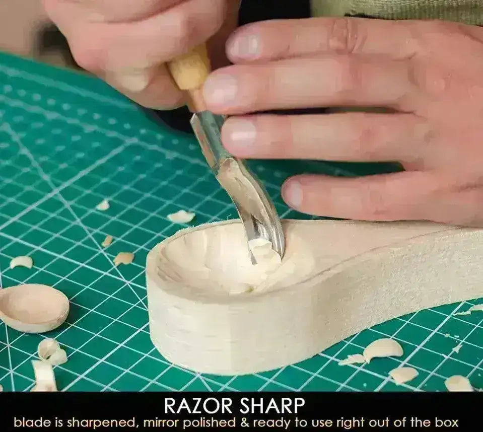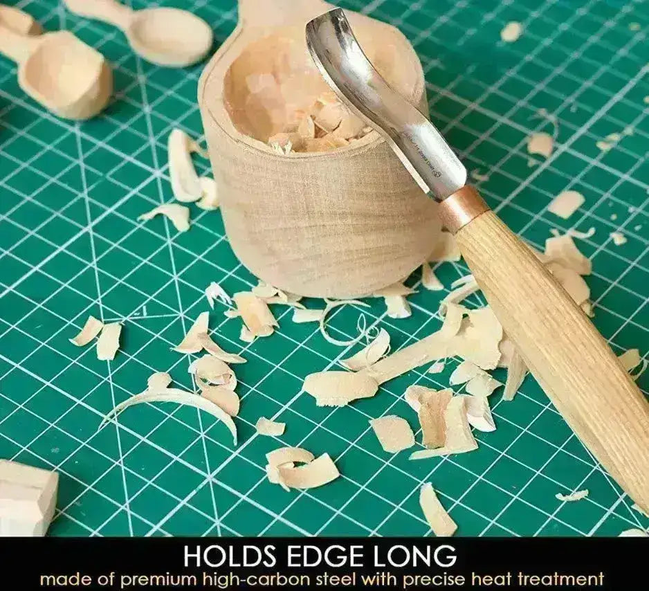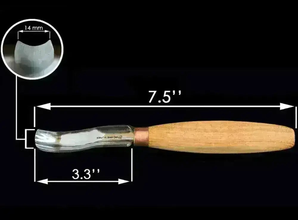 Kaareva taltta puun kaivertamiseen, täydellinen puun kovertamiseen. "Taivutettu taltta" on loistava työkalu pyöreän muotojen luomiseen puuhun hyvillä tuloksilla. Korvaamaton kuppien, kulhojen ja kauhojen naulaukseen.
