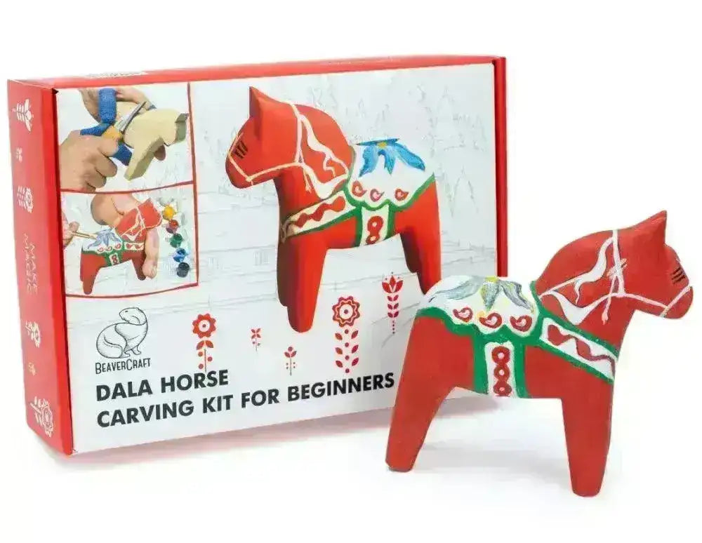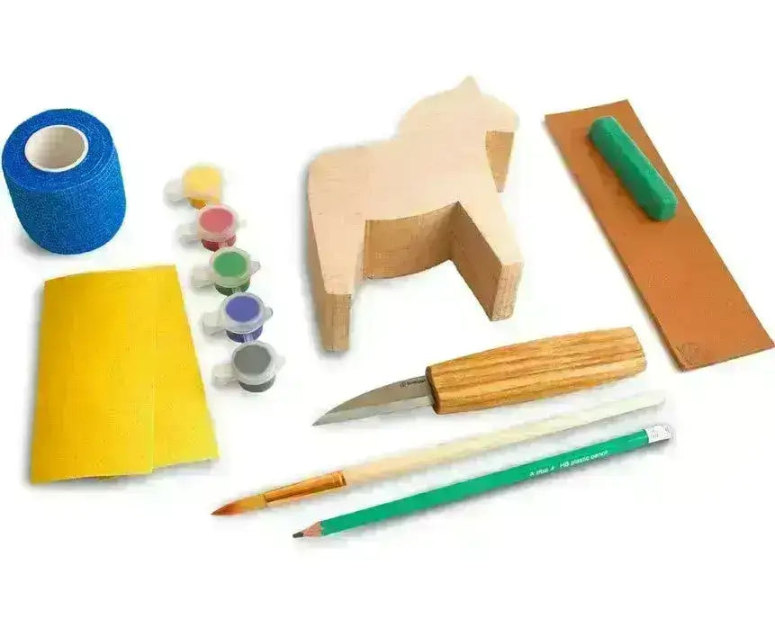 Dalahest-puunveistosetti sisältää kaiken mitä tarvitset kaivertamisen aloittamiseen ja upean puisen hahmon luomiseen. Täydellinen adventti- tai joululahja!