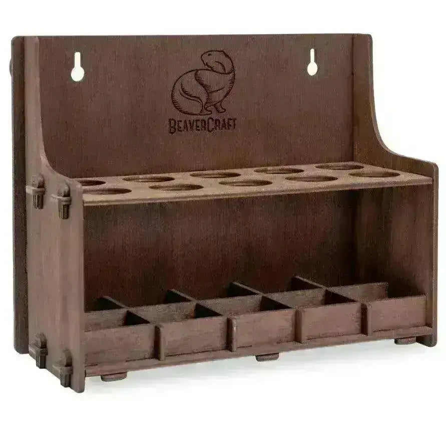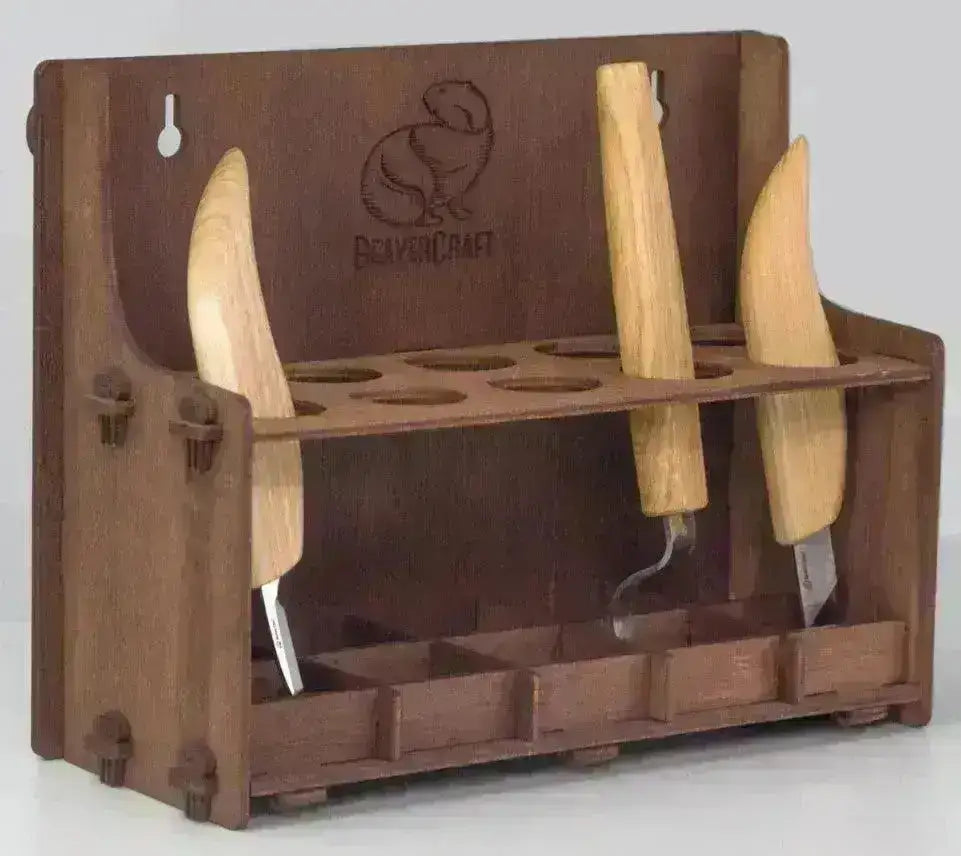 Erinomainen työkaluteline veitsille ja vastaaville. Täydellinen ripustettavaksi seinälle tai seisomaan työpöydällä. Hieno tumma viimeistely.