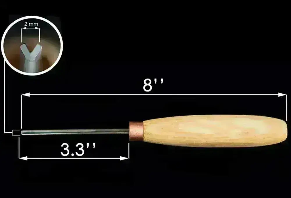 Käsintehty taltta Ukrainasta. K12/02 on terävä puunveistotyökalu 2 mm leveä ja 60 asteen kulmassa oleva V-profiili, täydellinen puunveistoprojekteihin ja loistava puuntyöstötyökalu puuseppäliikkeeseen!