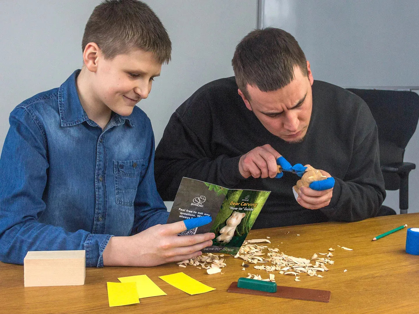 Täydellinen puunveiston aloittelijoille! Tämä aloituspakkaus sisältää kaiken mitä tarvitset puisen karhuhahmon tekemiseen. Beaver Craftin puunleikkaussetti on käsintehty Ukrainassa. Setti sisältää: