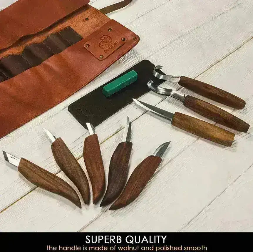 Tässä suuressa sarjassa yhteensä 8 erilaista veistä alkaen talttaukseen ja puunveistoon - Soveltuu kaikkiin puunveistoprojekteihin