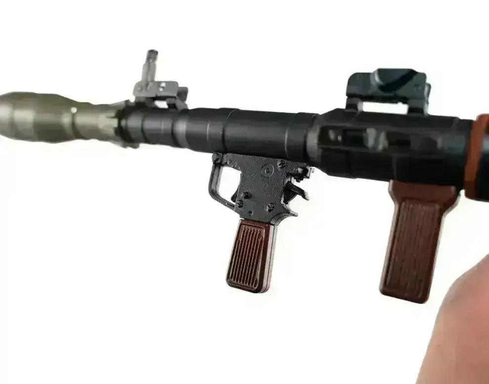 Tämä siisti roolipeli on 1:4 mittakaavassa ja valmistettu metallista ja aidosta puusta. Taistelukärki (raketti) voidaan irrottaa ja RPG toimitetaan sarjana. Tyylikäs ja tarkka minireplica, joka on tyylikäs sisustus tv-huoneeseen tai poikien huoneeseen!