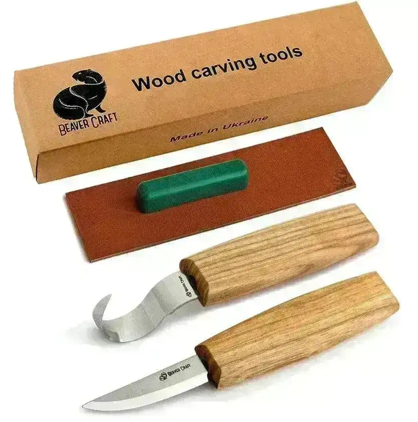 Käsintehdyt veitset Ukrainasta. S01-setti on täydellinen niille, jotka haluavat hyvän puunveistolaitteiston, jonka avulla voit muotoilla ja kovertaa puuta tarkasti ja tehokkaasti. Tämän kaiverrussarjan kaareva veitsi sopii täydellisesti lusikoiden, kulhojen ja vastaavien kovertamiseen. Mukana tulevassa kaiverrusveitsessä on lyhyt ja tarkka terä, ja sitä voidaan käyttää useimpiin puunveistotöihin.