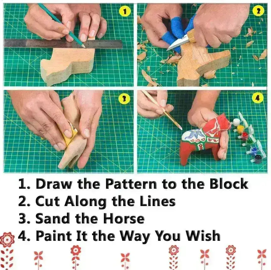 Dalahest-puunveistosetti sisältää kaiken mitä tarvitset kaivertamisen aloittamiseen ja upean puisen hahmon luomiseen. Täydellinen adventti- tai joululahja!