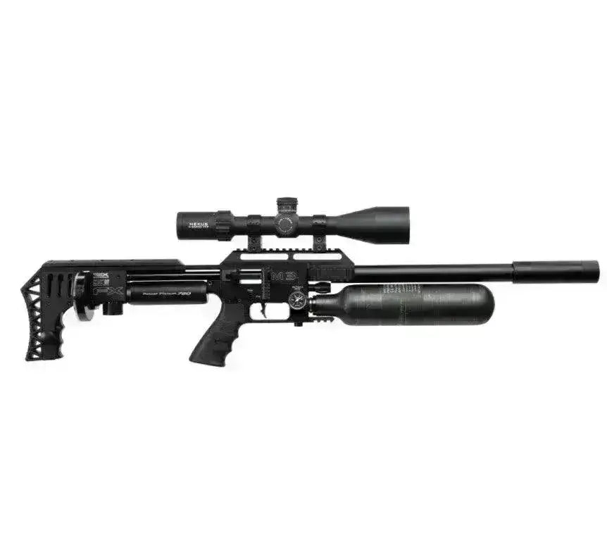 - 300bar Carbon Fiber Bottle, 20% mer kapasitet. Med det nye 2-regulator systemet i M3en vil rifla tåle denne 300bars 480cc tanken.