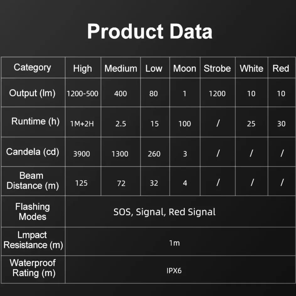 HL1 er en kompakt og kraftig hodelykt med både rød og hvit LED-lyskilde. Med en lysstyrke på opptil 1200 lumen og en rekkevidde på 125 meter, er denne lykten ideell for alt fra friluftsliv til krevende industrielle oppgaver.