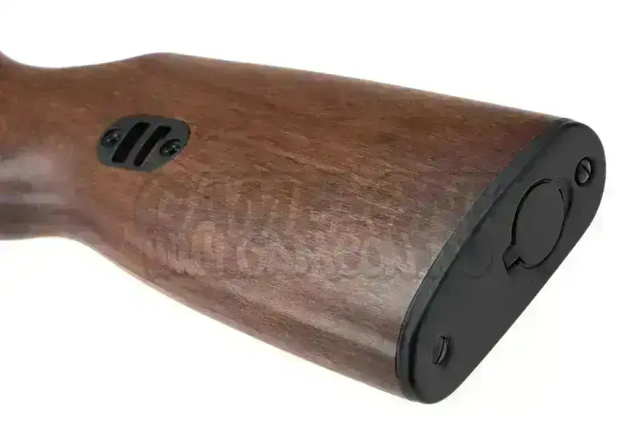Tämä historiallinen venäläinen SMG-kivääri näki päivänvalon vuonna 1940 ja sai lempinimen "papasha" - mikä tarkoittaa isää. SMG-kivääri tunnettiin uskomattoman korkeasta tulinopeudesta. Tässä kopiossa on teräsvastaanotin ja itse tuki on valmistettu mukavasta tekopuusta. Hauskuuden ja realistisuuden vuoksi tässä airsoft-kiväärissä on sähköinen takaisku, joka saa pultin palaamaan jokaisella laukauksella ja tunnet pienen rekyylin.