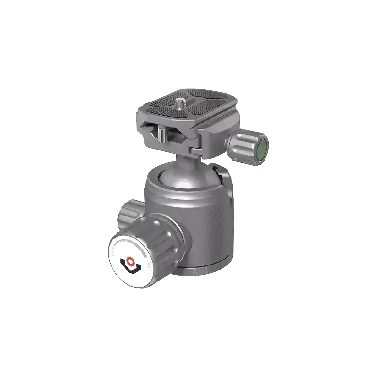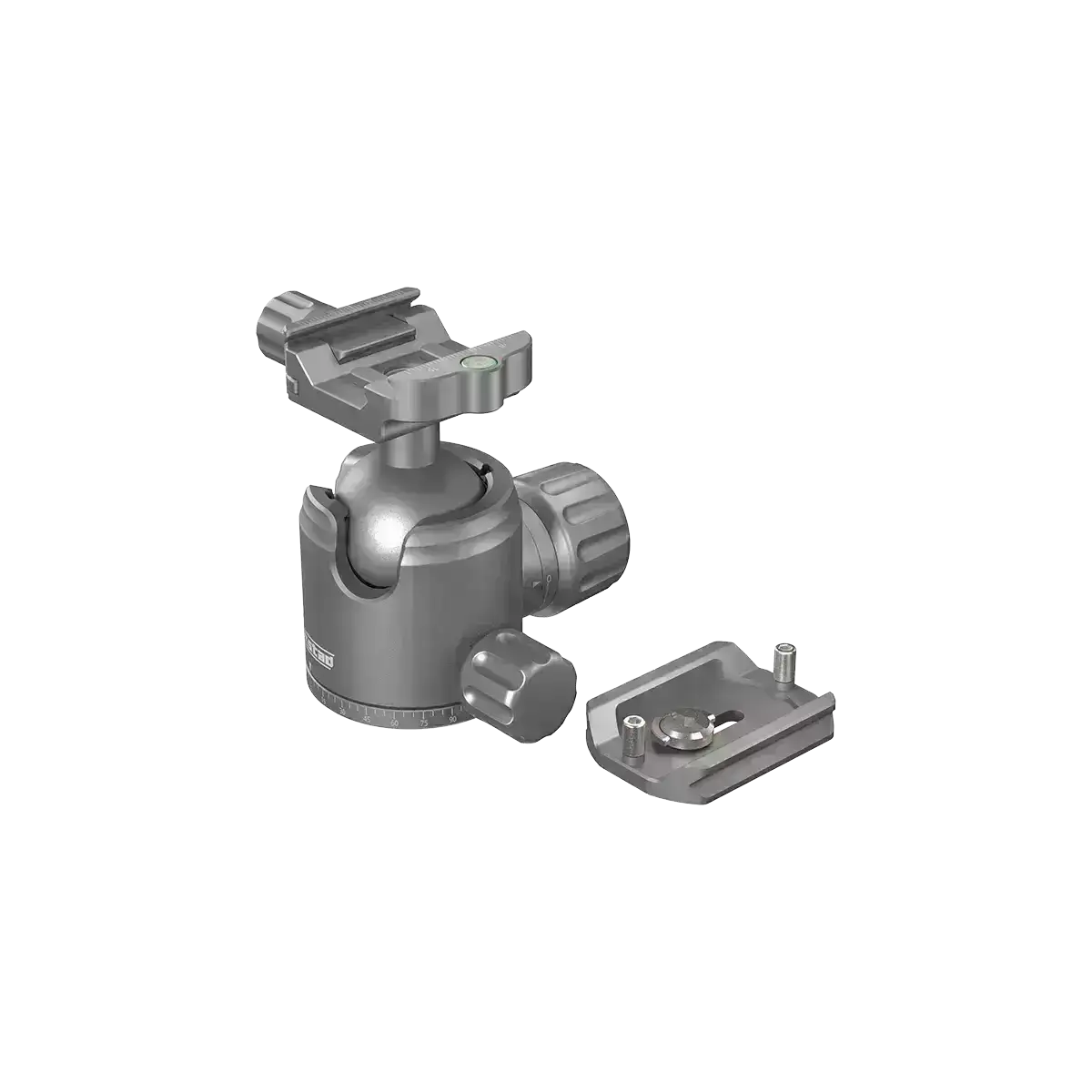 Dette 38mm ball head-kitet (modell RSRH-01) gir fleksibilitet og stabilitet for profesjonell bruk med presis justering. Utstyrt med 360° horisontal rotasjon og 90° vertikal drop-notch, muliggjør det enkel posisjonering for ulike behov.