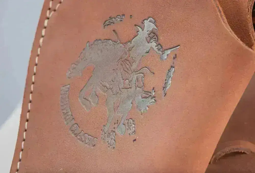 Karkea nahka ja paksut tikkaukset - Tyylikäs western-tyylinen revolverikotelo ja vyö. Sopii useimpiin ihmisiin ja revolvereihin.