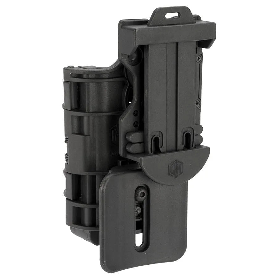 APS Quantum Mechanics taktisk hylster er konstruert i høystyrke polymer og er designet for operatører som krever både hastighet og sikkerhet. Hylsteret har et aktivt låsesystem med fjærbelastet åpning som gir lynrask tilgang til våpenet når det trengs som mest.