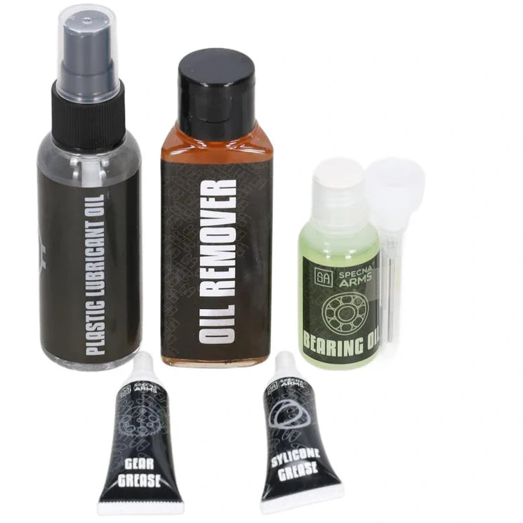 Dette komplette vedlikeholdssettet fra Specna Arms inneholder alt du trenger for å rengjøre og smøre airsoft-replikaen din. Riktig vedlikehold reduserer slitasje, forbedrer funksjon og forlenger levetiden på både girsystem og bevegelige deler.