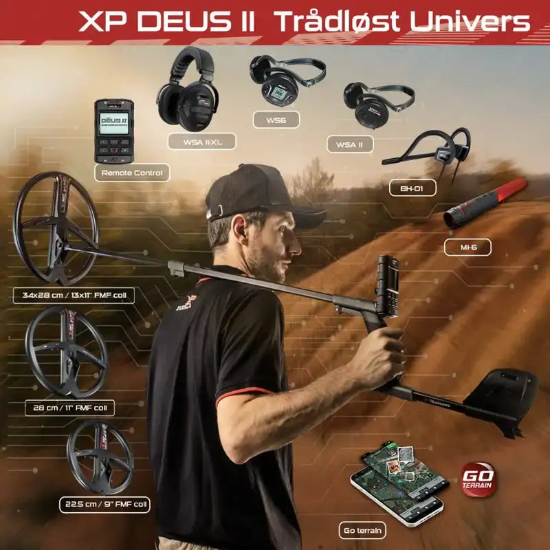 XP DEUS II er flaggskipet i XP-serien og representerer det ypperste innen moderne metallsøking. Med lynrask multifrekvens (FMF 4–45 kHz), avansert signalseparasjon og mulighet for bruk ned til 20 m under vann, er dette en metalldetektor som leverer på alle områder. Denne fullversjonen inkluderer fjernkontroll, WS6 trådløse hodetelefoner og 28 cm FMF søkehode – en komplett pakke for deg som vil ha det beste markedet kan tilby.